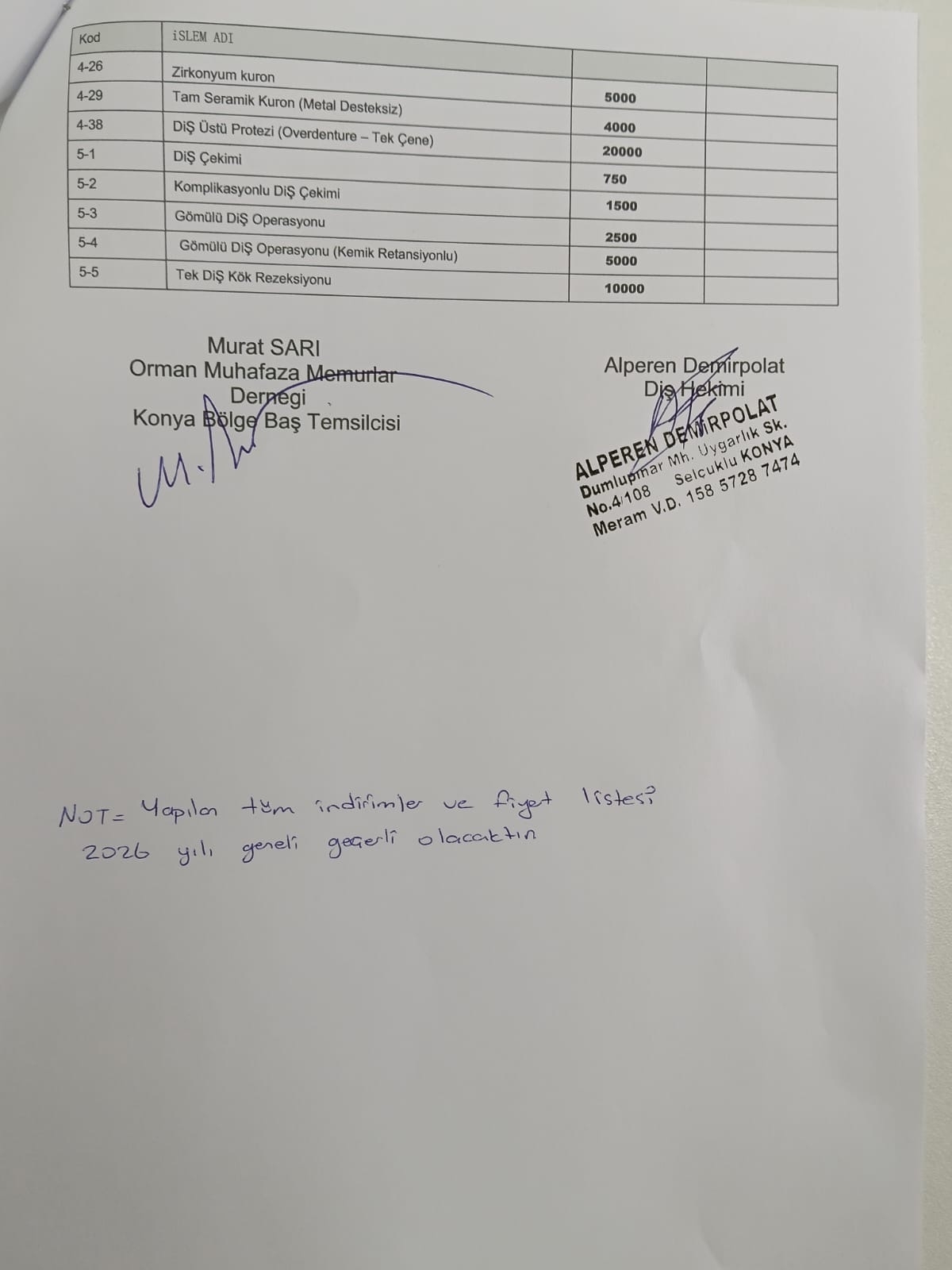OMMD Konya Orman Bölge Baştemsilciliği girişimleriyle, Konya Selçuklu merkezli Özel Dt. Alperen Demirpolat Diş Polikliniği ile kurumsal bir indirim anlaşması sağlanmıştır.